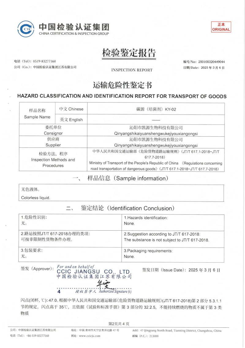 危險(xiǎn)特性分類(lèi)鑒定報(bào)告KY-02-4 -